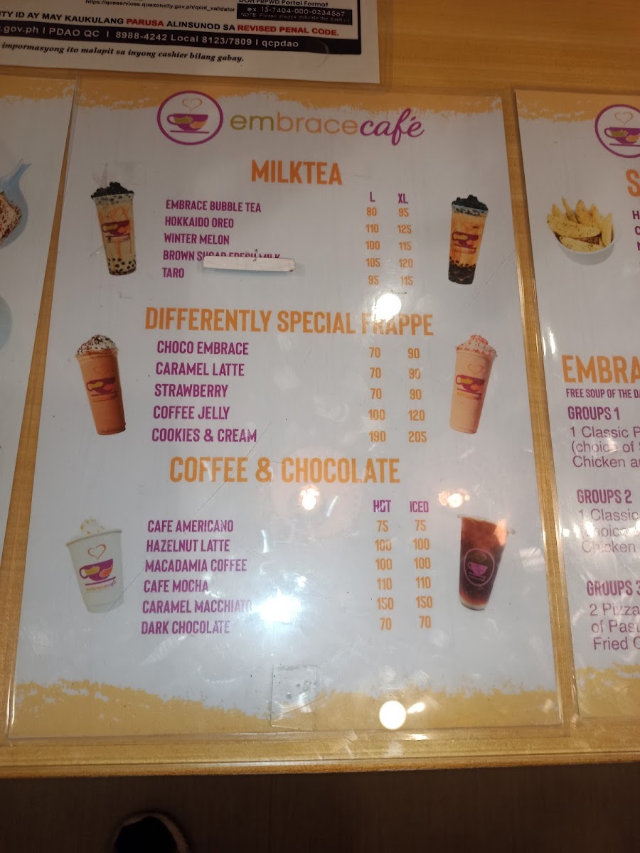 The menu at Embrace Cafe is a delightful mix of comforting dishes and flavorful beverages. Begin your culinary journey with their Cream Of Mushroom soup, a warm bowl that envelops your senses with its rich, creamy texture and earthy mushroom flavor—perfect for warming your soul. For coffee lovers, their Hot and Iced Hazelnut Espresso brings together the decided notes of roasted hazelnuts with robust espresso, crafted to perfection for just ₱100.00. And if you’re in the mood for something light, the Corn & Carrot mix is not just nutritious but also a refreshing companion to any meal at ₱88.00.